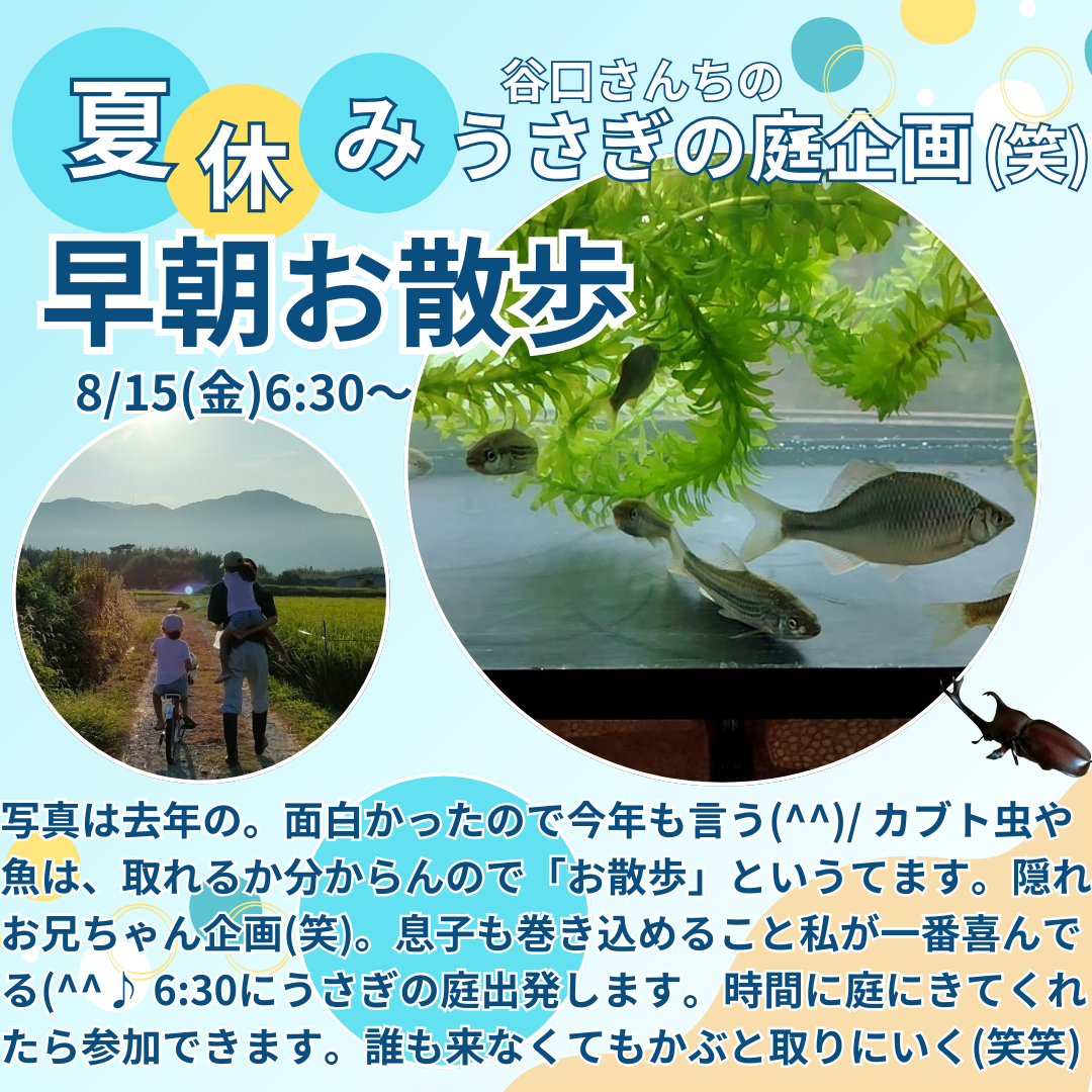 今年も参加者あり♪。息子も巻き込んで早朝魚とカブト取り。私が一番楽しんでる~~~(笑)。